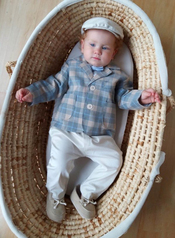 Miękki i wygodny garniturek do chrztu dla małego chłopca “Michałek”.