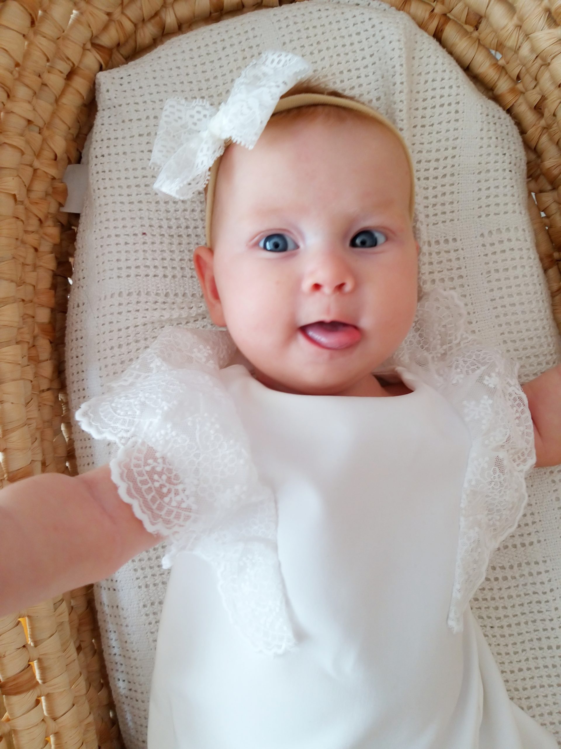 Do sukienki polecamy BUCIKI NOELI i BONETKĘ KORONKOWĄ